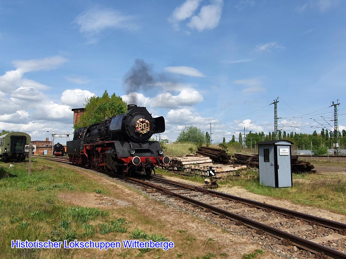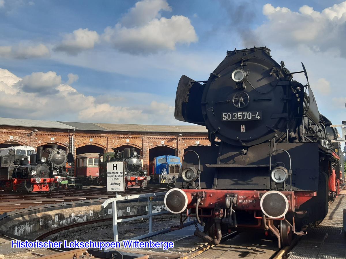 Im Hintergrund ist die ehemalige Wittenberger Schnellzuglok zu sehen.