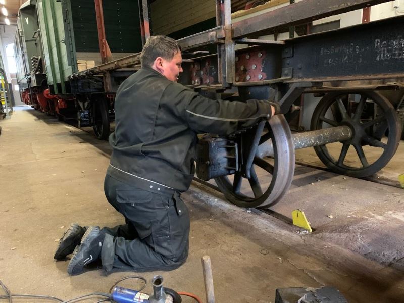 Der heutige Tag wurde der Fahrzeugpflege gewidmet. Gerade die Exponate, die derzeit draußen stehen müssen, brauchen regelmäßige Pflege. So wurden heute die Achslager unserer Dampflok 44 und der Dieselloks V60 und V22 abgeölt. Da die Exponate ziemlich schwer sind, haben wir die Diesellok 60022 in Betrieb genommen, mit der das Rangieren problemlos durchgeführt werden konnte.