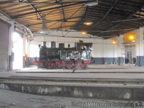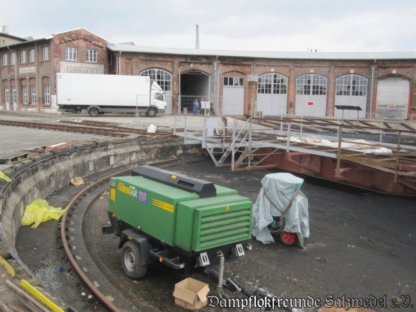In den vergangenen Wochen wurde die Arbeiten in Wittenberge so gut wie abgeschlossen. Zuletzt wurde noch die Schuppentore instand gesetzt und deren elektrische Steuerung komplett erneuert. Die Strahlengleise in den Lokschuppen sowie die Zufahrts- und einige Abstellgleise wurden komplett erneuert. Jetzt erstrahlt der Lokschuppen und die wichtigsten Nebengebäude in neuem Glanz.