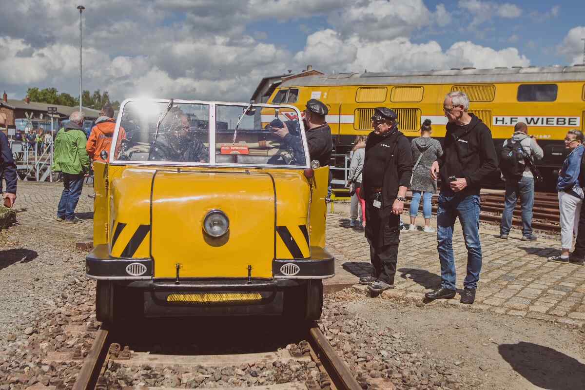 Sie und Fahrzeuge des Museums stehen zur Besichtigung und für Führerstandsmitfahrten zur Verfügung. Wer es gerne gemütlicher mag, kann sich in einem alten Personenwagen vom Beginn des vergangenen Jahrhunderts auf einem Rundkurs durch das Museumsgelände fahren lassen, mal eine Runde auf der Drehscheibe mitfahren oder eine muskelbetriebene Draisine bewegen. Selbstverständlich wird auch wieder für das leibliche Wohl gesorgt. Die Freiwillige Feuerwehr unterstützt dabei wieder mit ihrer selbstgekochten Erbsensuppe.