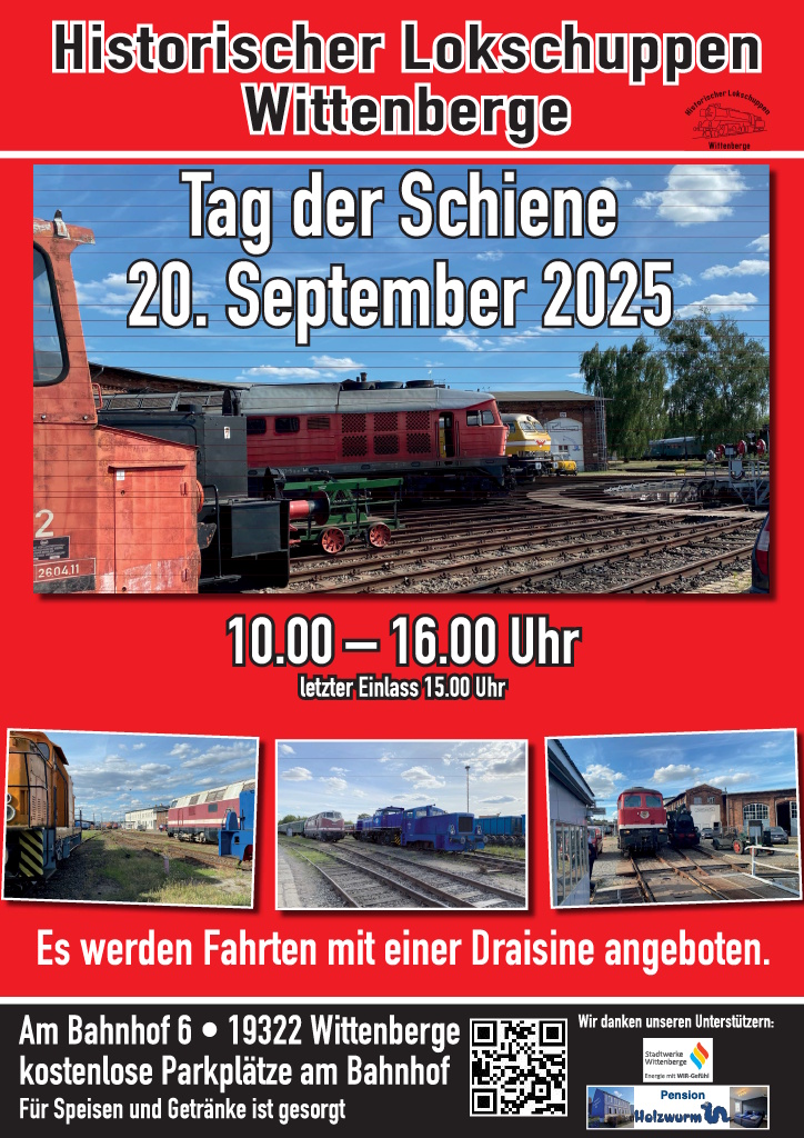 Sie können sich die Neuerungen zeitnah ansehen. Am Samstag, den 20. September, wird bundesweit der "Tag der Schiene begangen", an dem viele Eisenbahnunternehmen und -museen ihre Arbeit vorstellen. So werden auch wir an diesem Tag zwischen 10 und 16 Uhr für Sie zur Verfügung stehen.