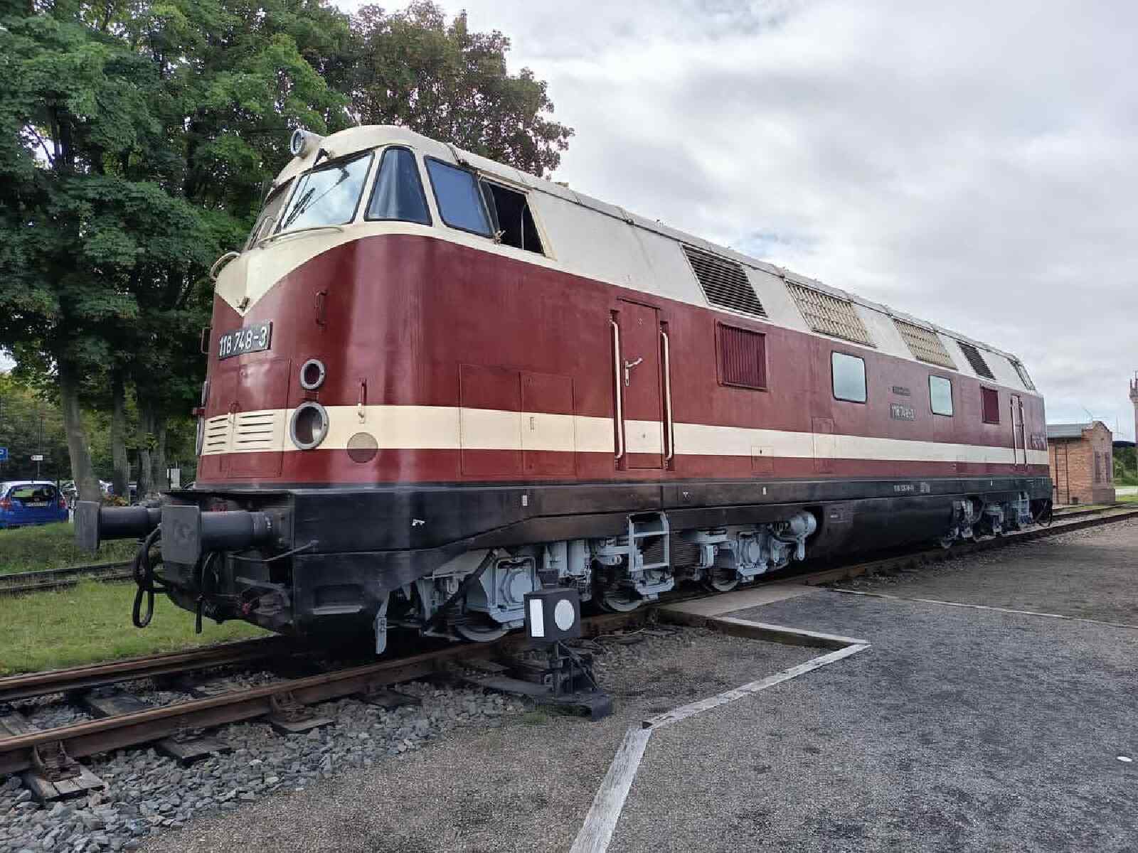 schon wieder ist ein Jahr vergangen und wir steuern auf Weihnachten und den Jahreswechsel zu. Natürlich denkt man dabei auch an Geschenke. Das tun wir auch. So freuen wir uns besonders über unser größtes Weihnachtsgeschenk dieses Jahr. Unsere Diesellok 118 748 ist nun wieder betriebsfähig. Ein paar Worte zu der Lok: Sie wurde 1968 bei beim VEB Lokomotivbau Karl Marx in Potsdam-Babelsberg gebaut, verfügt über zwei Dieselmotoren mit je 1.200 PS und darf maximal 120 km/h schnell fahren. Damit ist sie eine Universallok, die sowohl im Personen- als auch im Güterverkehr eingesetzt wurde. Nach ihrer Abstellung durch die Deutsche Bahn AG im Jahr 1999 wurde sie an die Mitteldeutsche Eisenbahn verkauft, die sie in 2020 an die Firma PRESS weitergab. Seitdem bereichert sie unsere Fahrzeugsammlung, bisher allerdings nur als funktionsfähiges Ausstellungsobjekt ohne Streckenzulassung. Im Jahr 2023 erwarb ein Mitglied unseres Vereins die Lok.