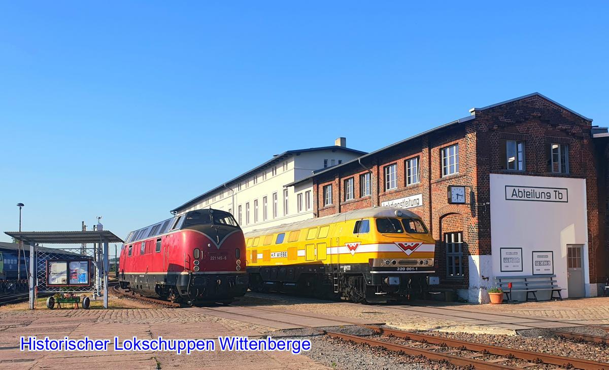 ![]() Ganz untypisch für das Bw Wittenberge zeigen sich die beiden ehemaligen Bundesbahn- Maschinen neben unserer Lokleitung. |