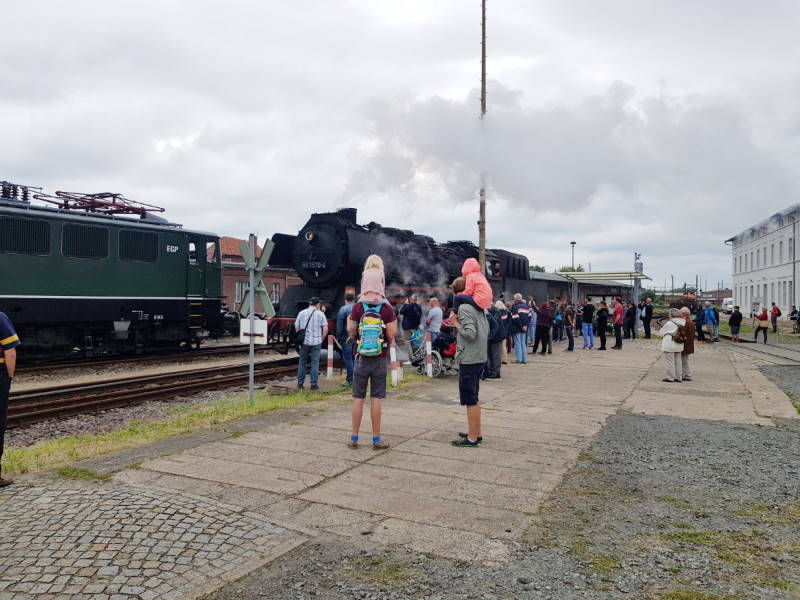 Nach längerer Abstellzeit durfte auch die Diesellok 118 748 mal wieder zeigen, dass sie noch nicht zu alten Eisen gehört. Der neue Eigentümer der Lok hatte zugestimmt und ein Eisenbahnsachverständiger zuvor den ordnungsgemäßen Zustand der Maschine attestiert. Also wurde sie für die Paraden in Betrieb gesetzt.