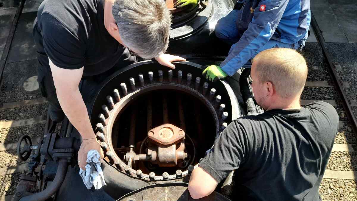 Außerdem wurde der Dampfregler bei unserer Dampflok 50 3570 wieder eingebaut, der beim letzten Einsatz der Lok einen Schaden erlitten hatte und inzwischen von einer Fachwerkstatt instandgesetzt worden ist.