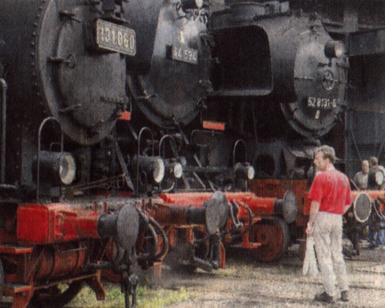 ![]() Die schwarzen Giganten im Lokschuppen finden immer wieder Bewunderer. |