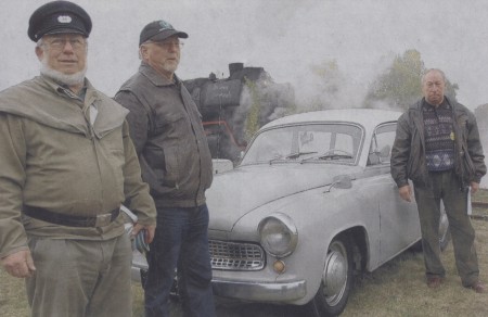 Lothar Meyer (von links), Günter Eichner und Besitzer Gerald Müller posierten vor dem Wartburg 311 Kombi aus dem Jahr 1959. Die Mitglieder des Oldtimer-Stammtisches Pretzier feierten dessen zehnjähriges Bestehen auf dem Gelände des Lokschuppens in Salzwedel. |